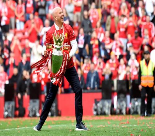 斯洛特在自己的英超菜鸟赛季就率队夺冠,比肩穆里尼奥、孔蒂等名帅,一下声名鹊起。但是,在绝大多数媒体和球迷看来,这座英超冠军奖杯至少有一半的功劳该记在前任克洛普头上——球员,战术全是克洛普打造的,斯洛特不过是享受了“前人栽树”的福利。