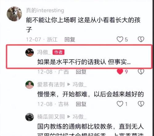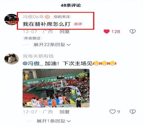 还有网友给冯傲加油,“冯傲加油,下次主场见。”冯傲的回复是,“我在替补席怎么打?”“如果是水平不行的话我认,但事实...”