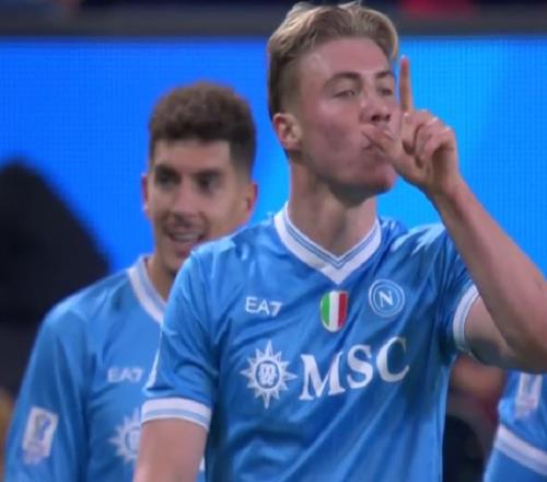 比赛开始后,双方场面胶着,谁都没能压制对手。关键时刻,霍伊伦德的爆发,打破了场上平衡。第39分钟,霍伊伦德在禁区内接球,随后用身体顶住AC米兰后卫,转身送出横传,门前的门将和后卫都没能解围,最终内维斯包抄,轻松推射空门,那不勒斯1-0领先。
