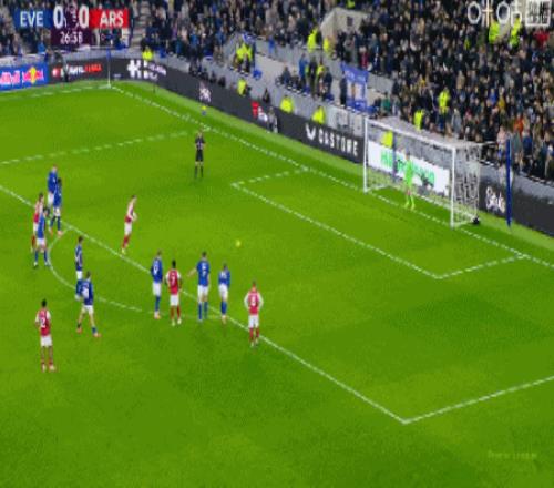 第27分钟,奥布赖恩手球被判点球,哲凯赖什点球破门,阿森纳1-0埃弗顿