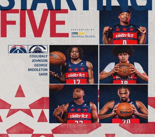 首发阵容方面,快船队这边,祖巴茨因伤缺阵,保罗继续未随队,小琼斯和博格丹也不打,泰伦卢排出的最新首发五人组为:詹姆斯-哈登、克里斯-邓恩、科怀-伦纳德、约翰-科林斯和布鲁克-洛佩斯;奇才队这边,特雷·杨继续缺阵,首发阵容则为:库利巴利、约翰逊、乔治、米德尔顿、萨尔。