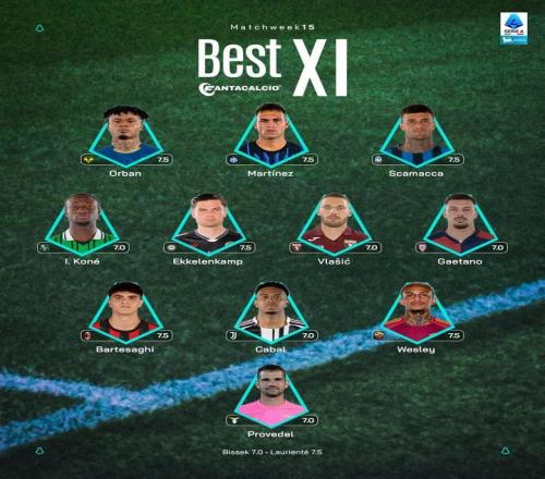 意甲第15轮最佳阵容:劳塔罗、巴尔泰萨吉、卡瓦尔入选